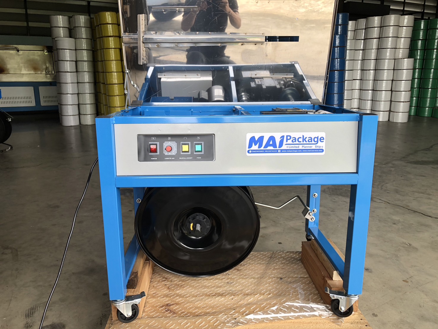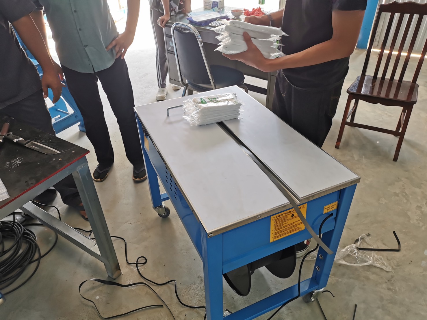 - ใช้งานง่าย สะดวก สอดสายรัดแล้วเครื่องทำงานอัตโนมัติ — เหมาะกับกล่องหลายชนิด เช่น กล่องกระดาษ, กล่องไม้, ท่อ PVC, หนังสือ ฯลฯ