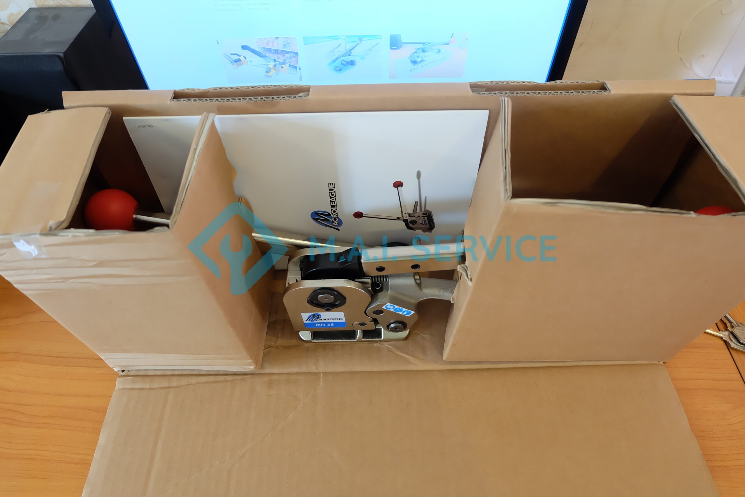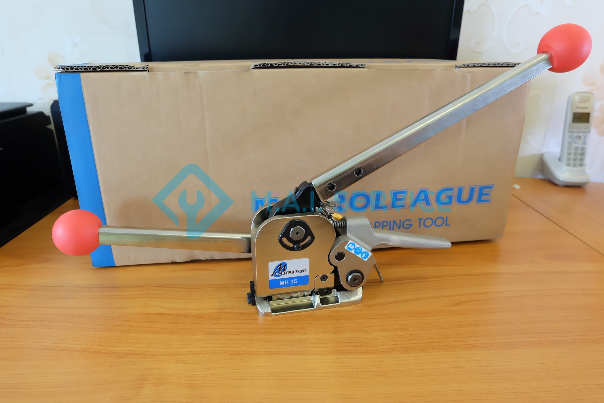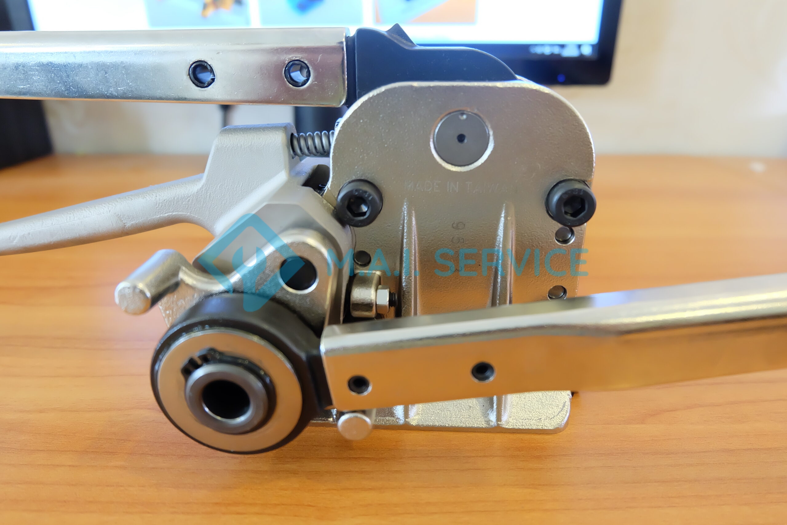 เครื่องรัดเหล็กพืดแบบไม่ใช่กิ๊บ จาก Macroleague ไต้หวัน กลไกการทำงานใช้เทคนิคของอิตาลี่ แบบดึง ย้ำ ตัด ในตัว ใช้งานง่าย สะดวก สามารถใช้กับเหล็กพืดขนาดกว้าง 13-19มม. และ ความหนาสูงสุดถึง 0.75มม. โดยไม่ต้องใช้กิ๊บ ซึ่งสามารถช่วยลดต้นทุนสำหรับการใช้งานในปริมาณงานมากๆ